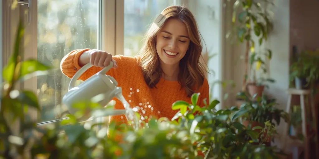 - آبدهی مناسب: این مهمترین عامل در نگهداری گیاهان است. هر گیاه نیاز آبی متفاوتی دارد. قبل از آبیاری، انگشت خود را تا بند اول در خاک فرو ببرید؛ اگر خاک خشک بود، زمان آبیاری است. از آبیاری بیش از حد (که منجر به پوسیدگی ریشه میشود) و یا کمآبی (که باعث پژمردگی گیاه میشود) پرهیز کنید. استفاده از آب بدون کلر (آب مانده) برای برخی گیاهان حساس بهتر است.
